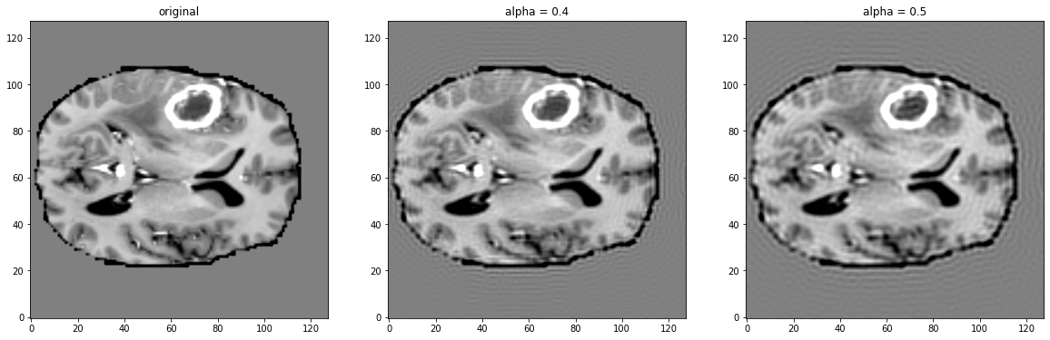 Hi @rijobro, here one can see the transform applied on a sample image from the BraTS dataset. Leftmost is the original volume, then separate applications of the transform with different strengths. |