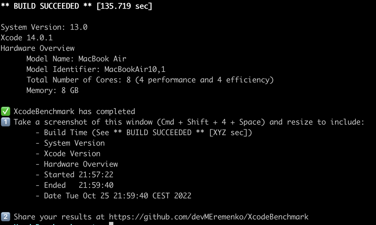 MacBook Air 13" 2020 M1 8GB Xcode 14.0.1 #366