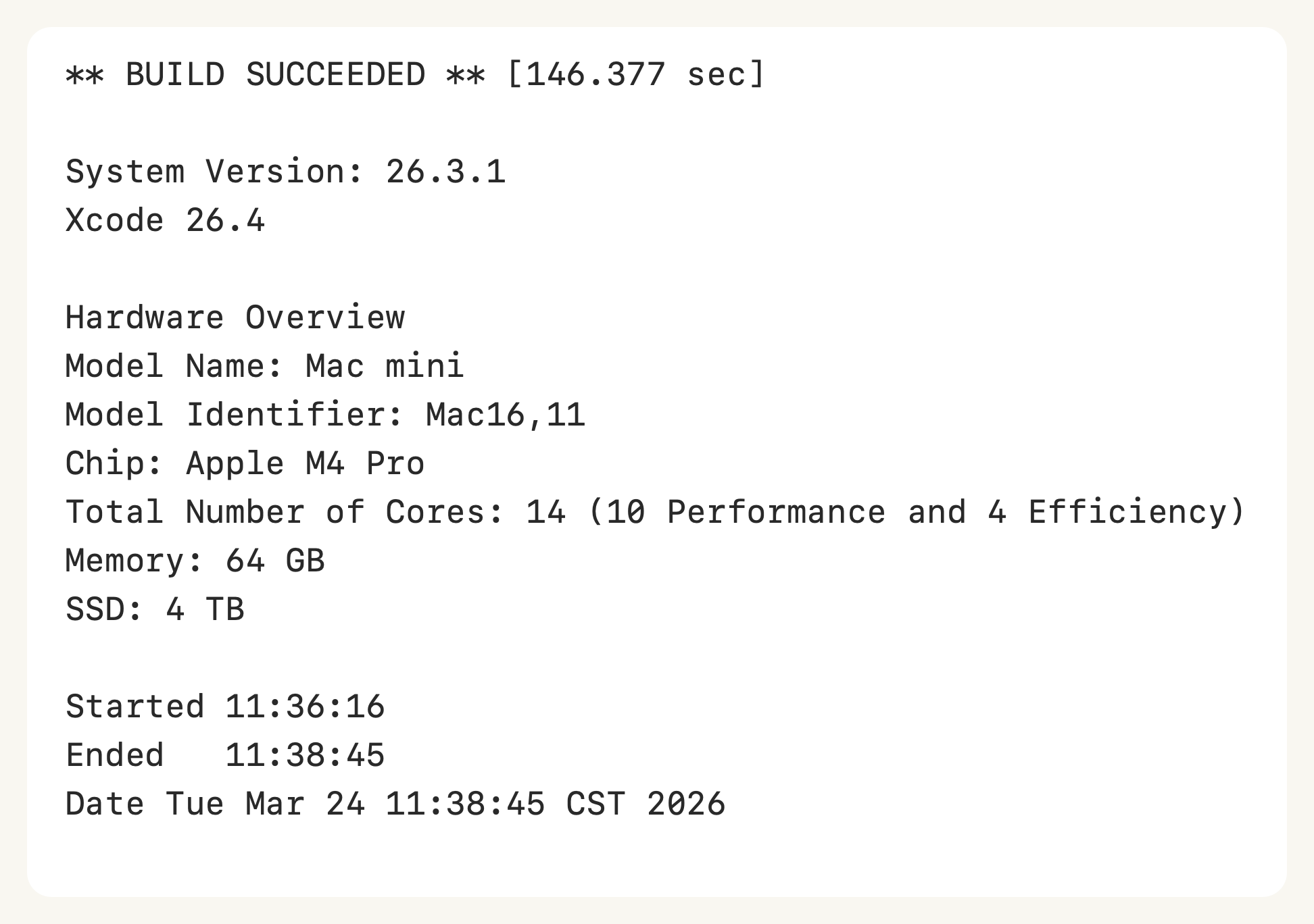 Add Mac Mini 2024 M4 Pro Xcode 26.4 result#651
