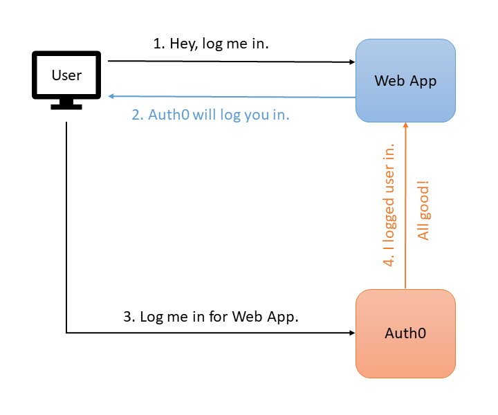 You now have a complete Web App that delegates authentication and authorization to Auth0. When a user requests a protected page or ask directly to sign in, the Web App redirects the user to Auth0. Once Auth0 authenticates user and authorize application, it redirects the user back to Web App. At the end of the flow, the Web App gets the ID Token with a set of claims (based on the tokens id_token, profile and email), which have a user related information. In the next tutorial you'll expand the functionality by adding Auth0 API in addition to Auth Application.