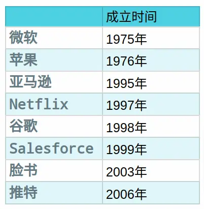 你想想看,微软和苹果成立于个人电脑的诞生初期;亚马逊、谷歌、脸书、腾讯、阿里成立于互联网诞生初期。
