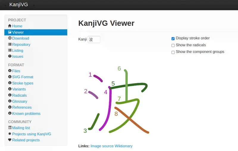 这个项目提供汉字的 SVG 文件下载,可以显示笔划动画。