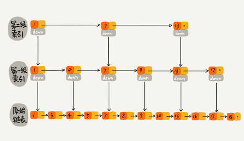 - 但链表查数据(O(n))始终不如数组通过下标(O(1))快,有没有办法让单链表查数据更快些呢?